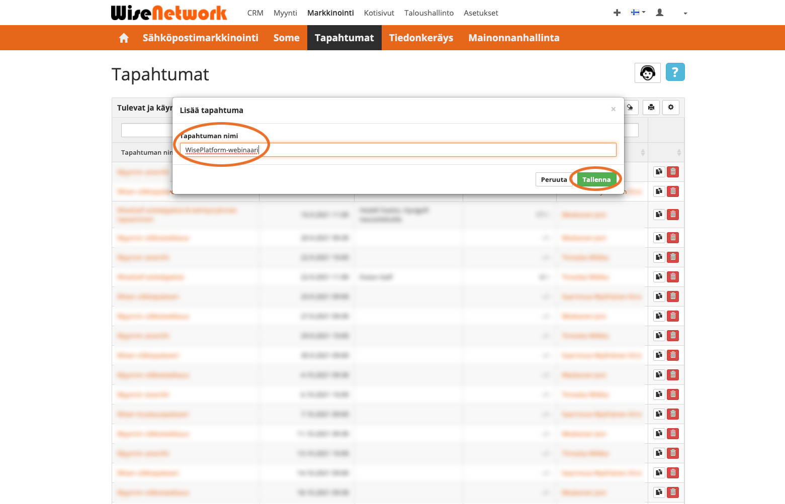 3. Tallenna lopuksi tapahtuma. Suositeltavaa on tehdä tallennuksia myös tasaisin väliajoin kesken tietojen täydentämisen.